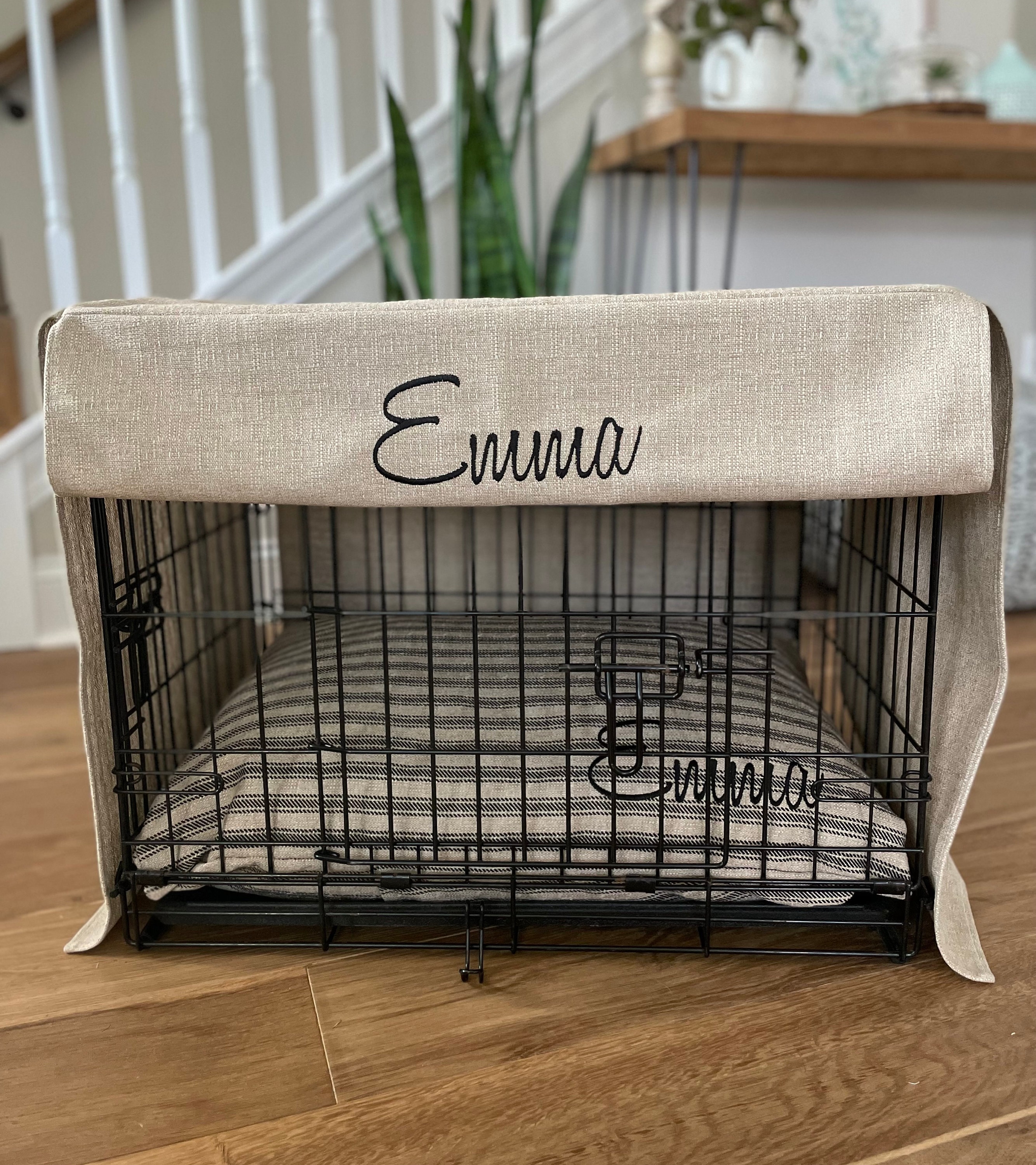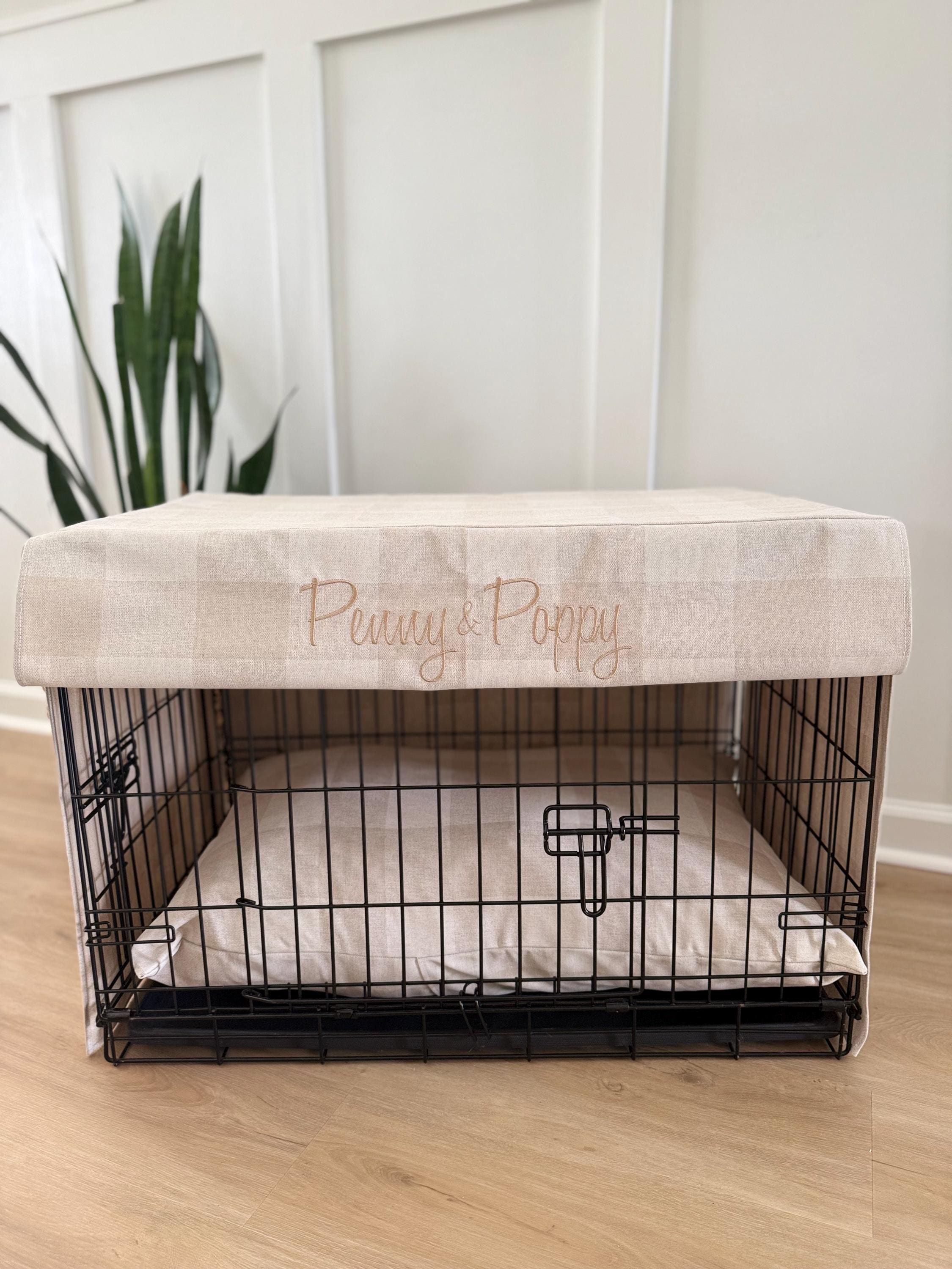 Linen Dog Crate Cover - Personalized Pet Kennel Cover - Small and L...