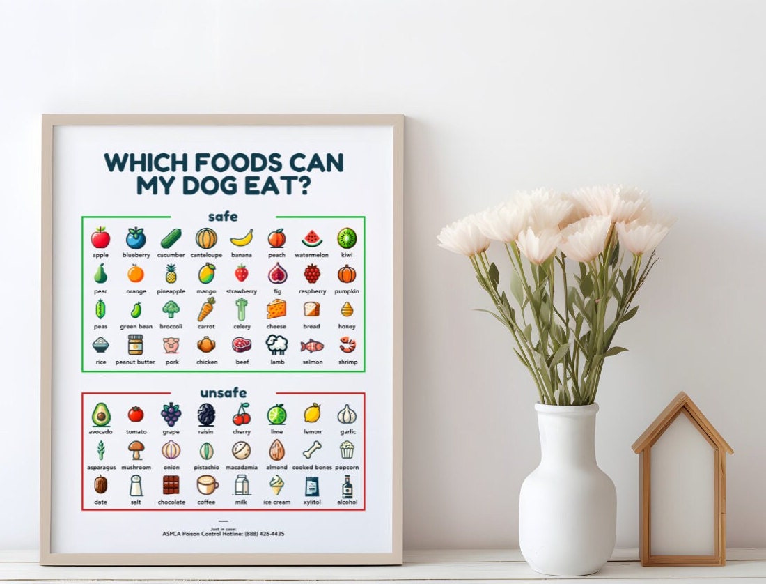 Dog Food Safety Chart - What Can Dogs Eat Poster, Safe and Toxic Fo...
