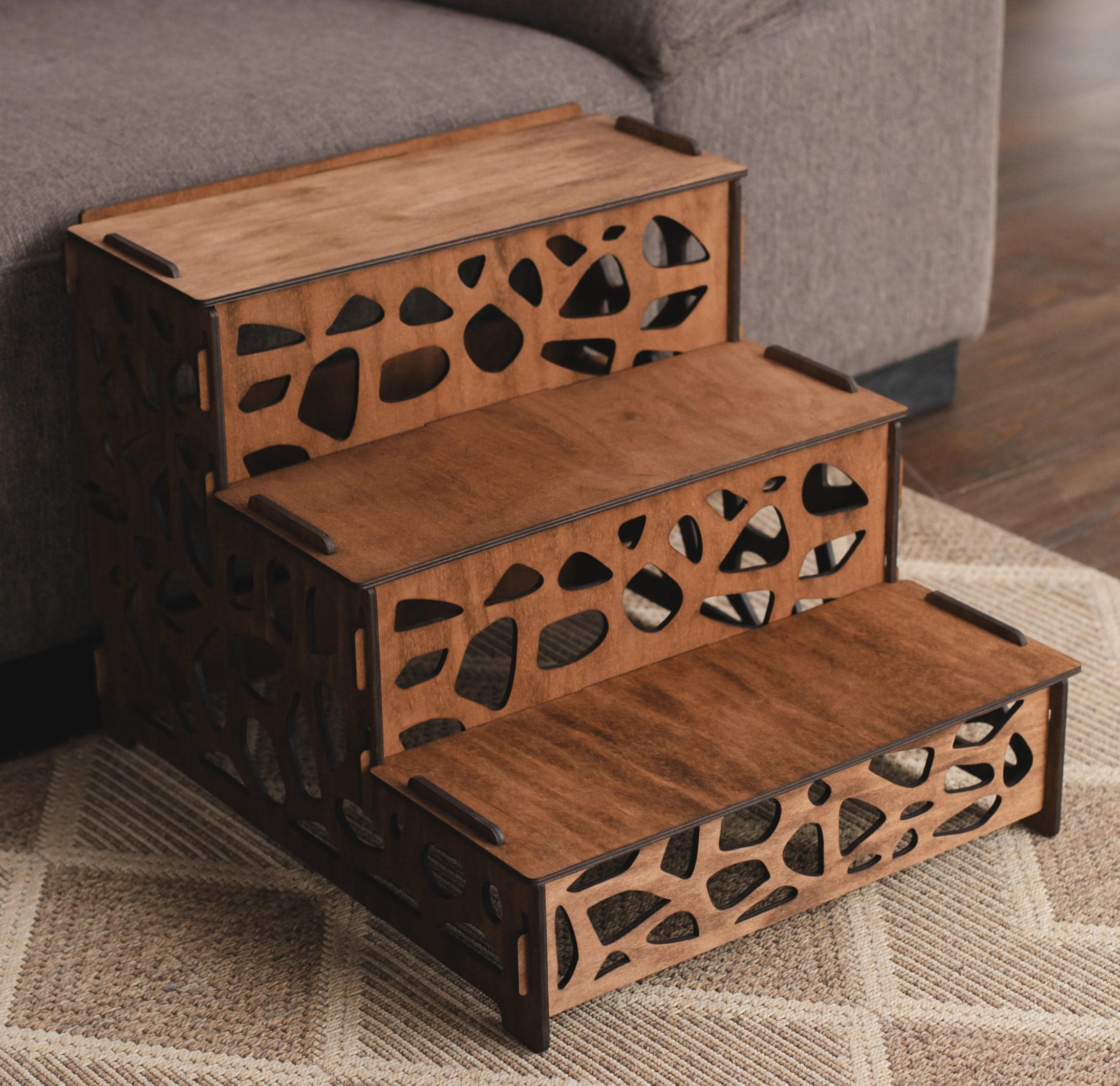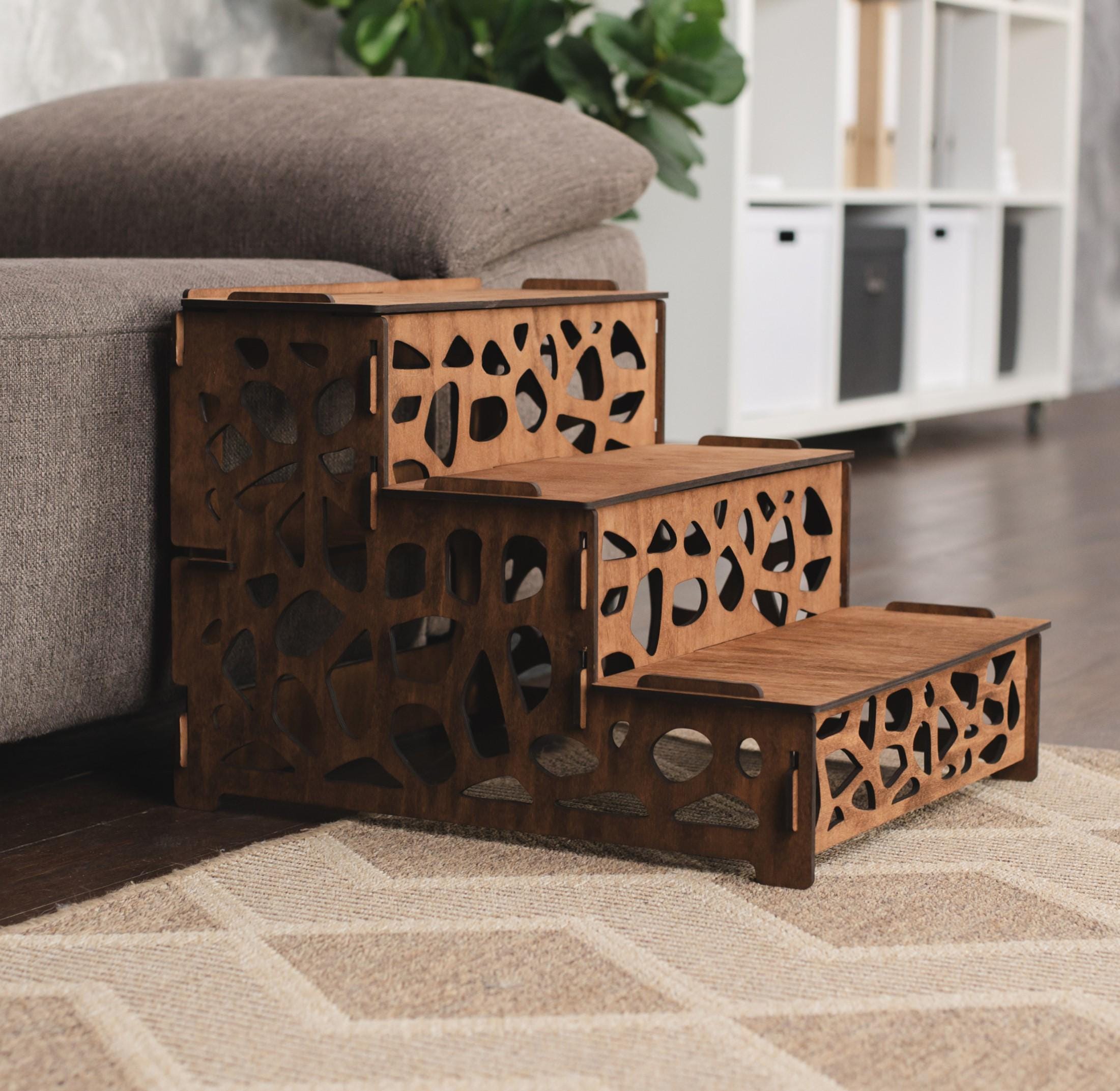 "Plywood pet steps for bed - a stylish and sturdy solution to help your furry friend reach high...