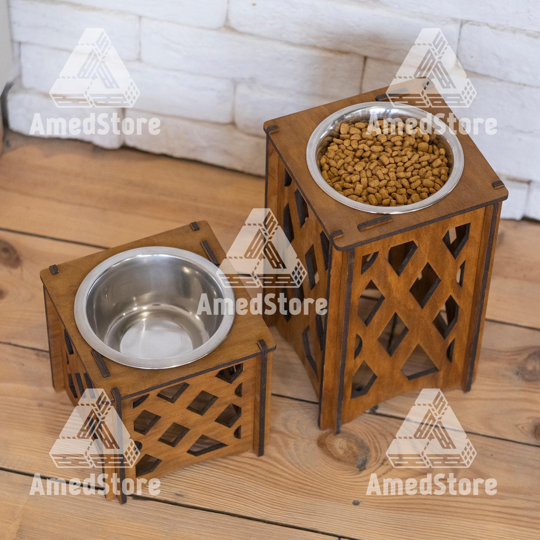 Wooden dog bowl stand, Dog bowl stand single, Dog raised feeder, Ca...