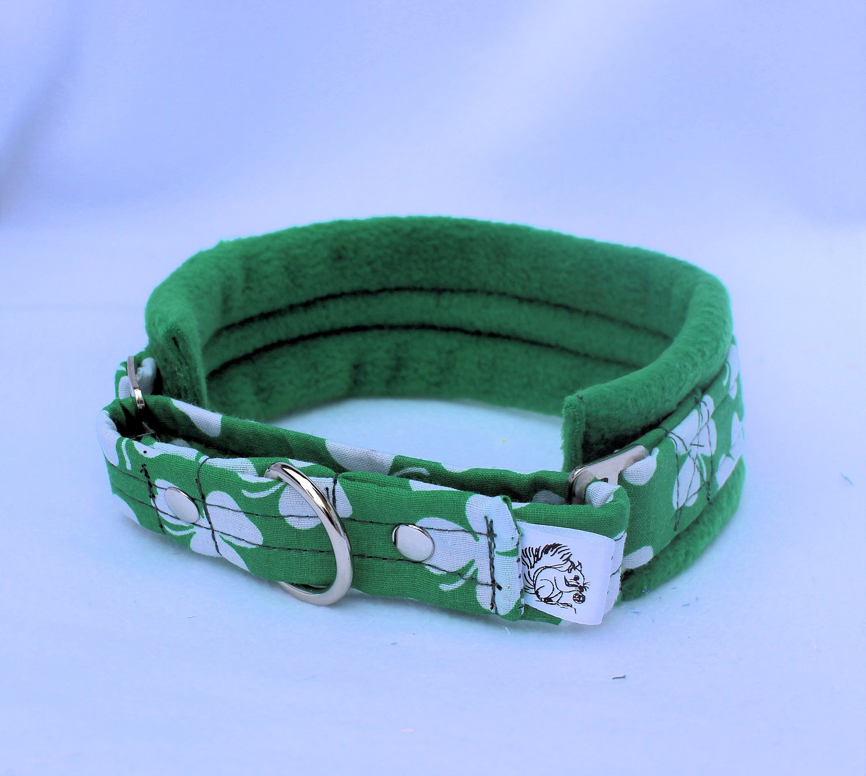 Hand Sewn Luxury Emerald Green Clover Pattern Fleece lined MADE TO MEASURE Martingale Collar Standar...