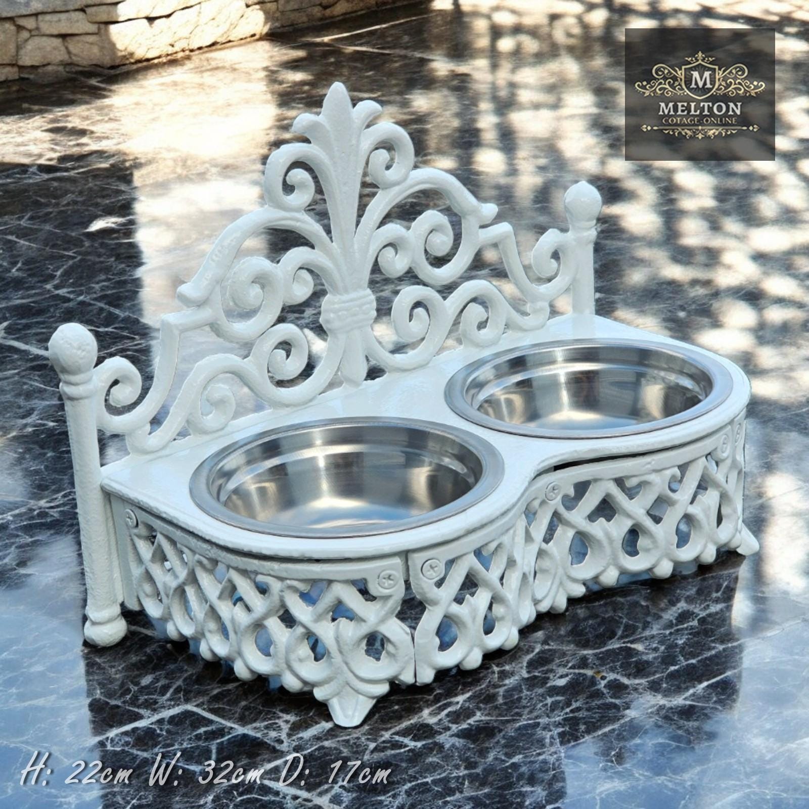 Elevate Your Pet's Mealtime with Antique Charm - Dog/Cat Bowls in Raised Cast Iron Stand Transform y...