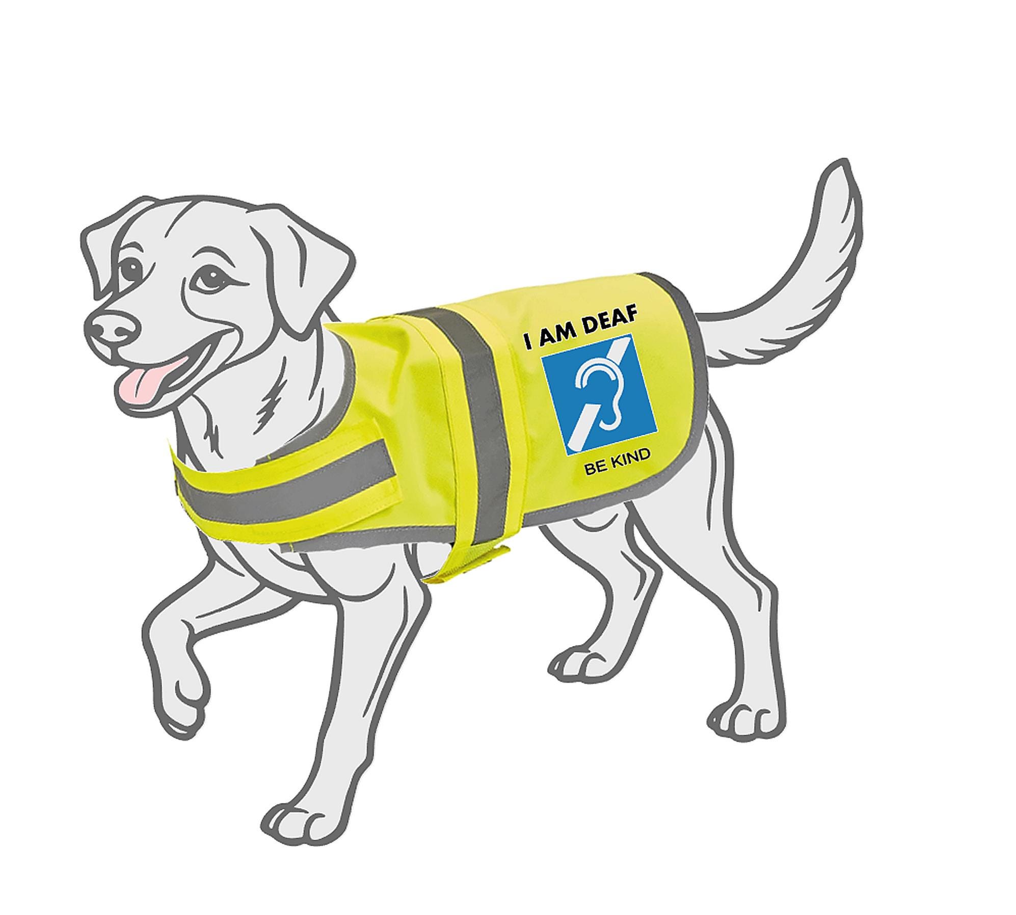 Hearing impaired dog Hi-Vis, Dog Hi-Vis Dog Jacket with Velcro fastening available in 6 colours with...