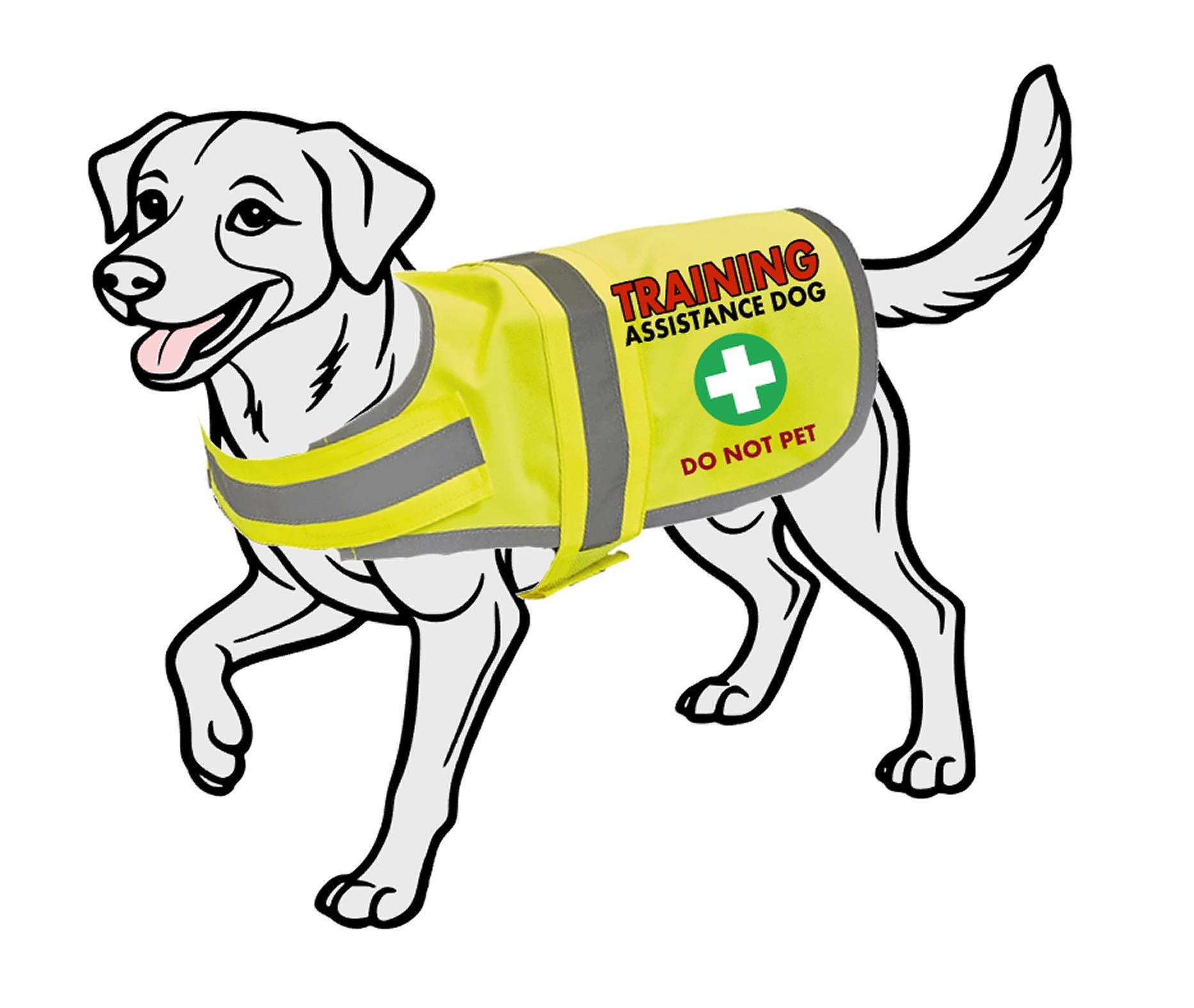 Assistance Training Dog Hi-Vis Dog Jacket with Velcro fastening available in 6 colours with image on...