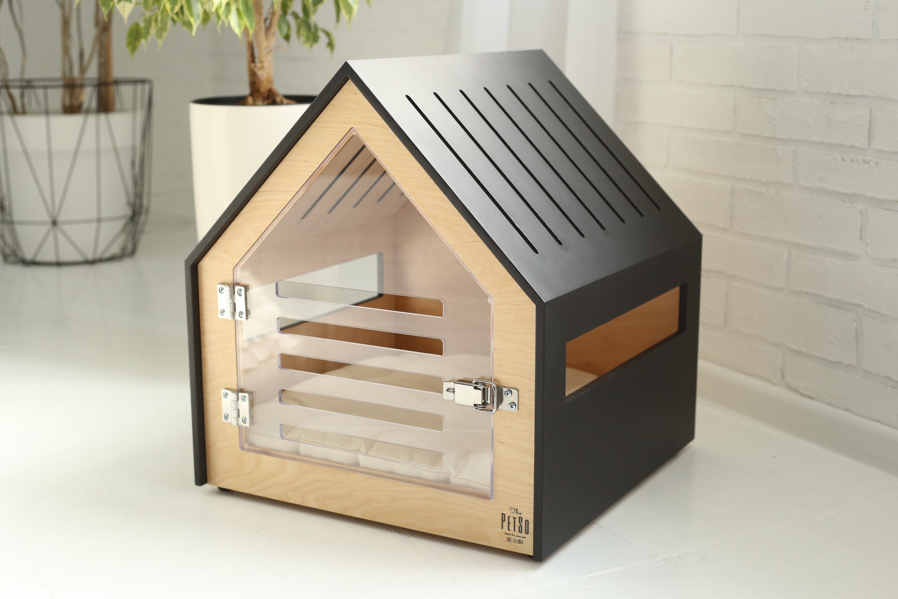 Modern dog and cat house with acrylic door, Dog furniture, Indoor d...