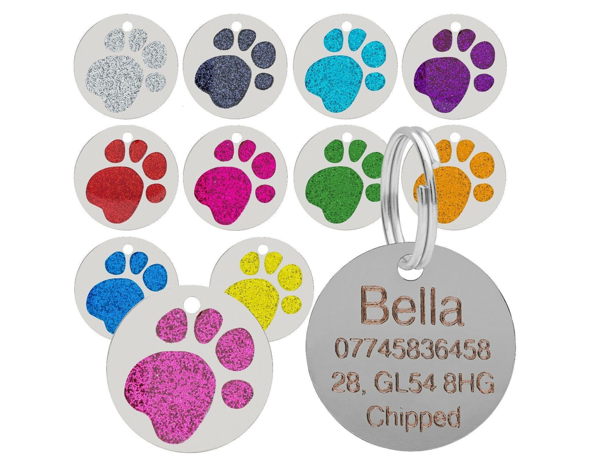High Quality Luxury 25mm Reflective Glitter Paw Print ID Tags Ideal For Cats And Dogs High Quality D...