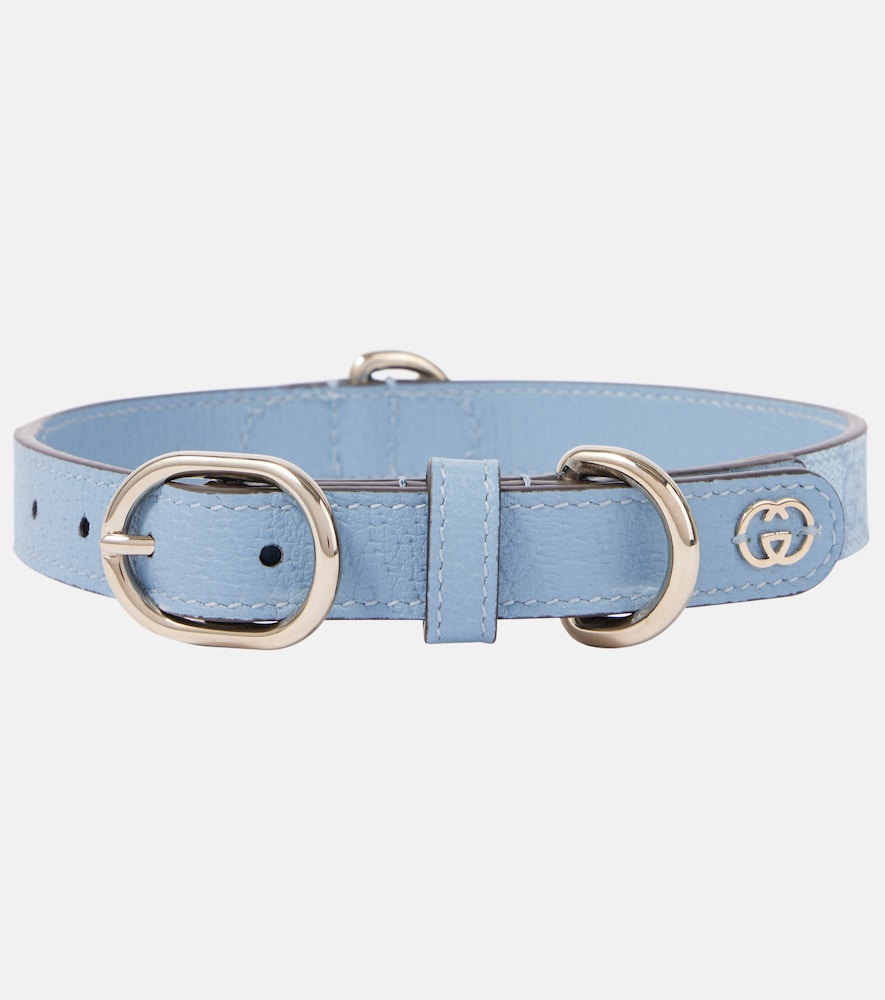 Gucci, GG leather-trimmed dog collar, Blue, M, Pets