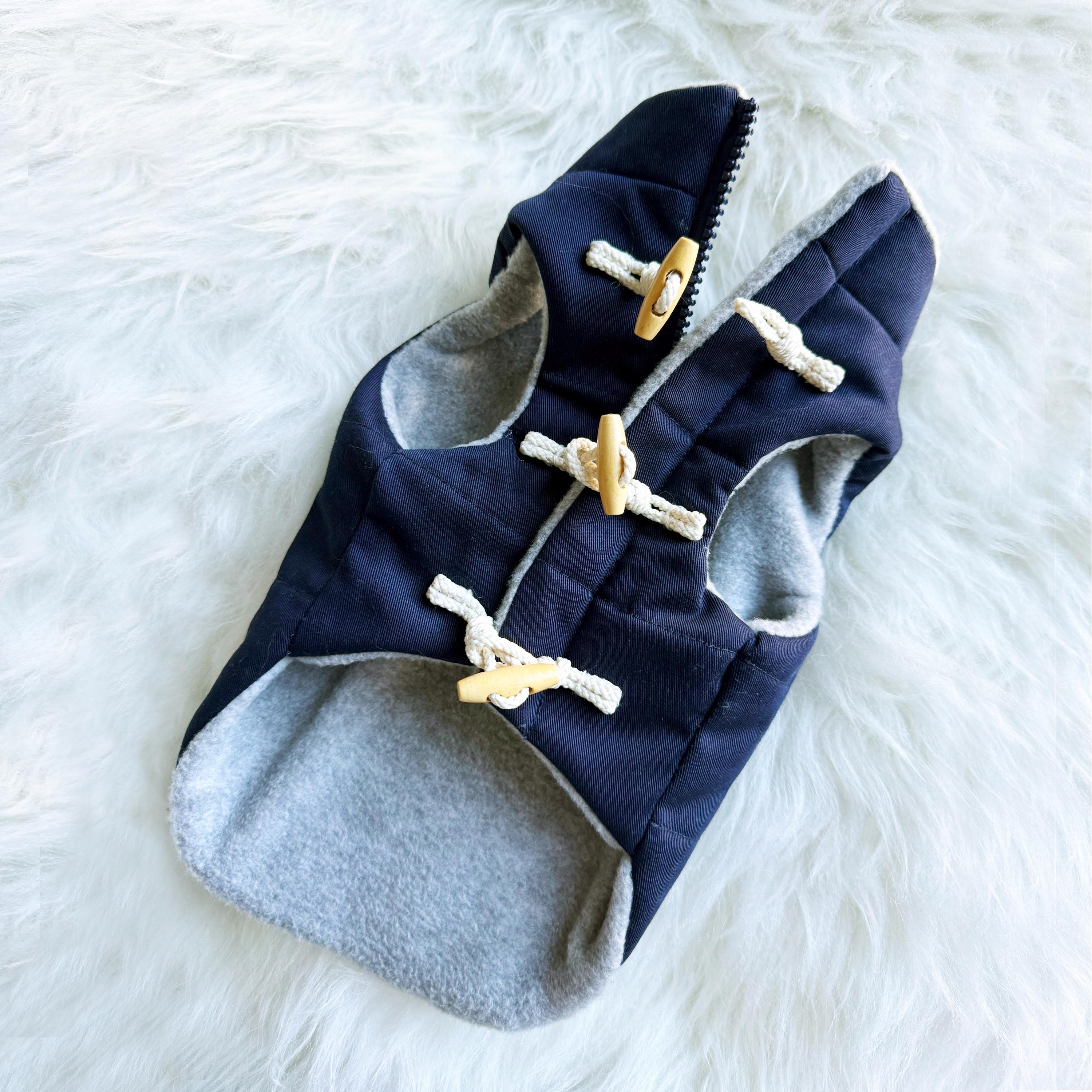 Handmade Navy Toggle Dog Coat - Cozy Fleece Lined Winter Jacket Keep your pup warm and stylish with ...