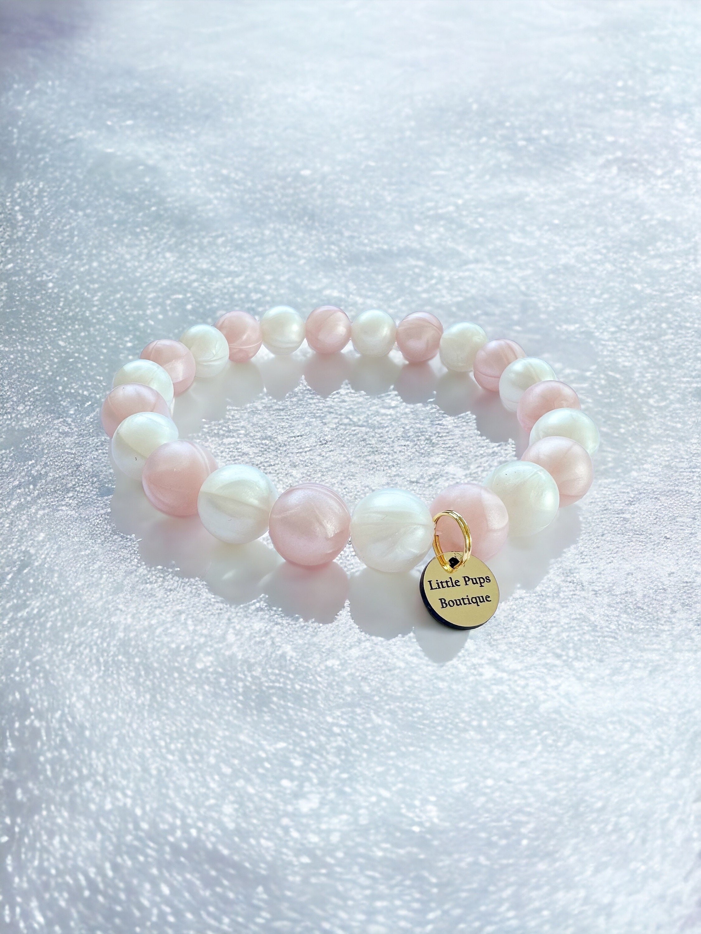 Silicone bead dog necklace, pink and white beaded dog collar, water...