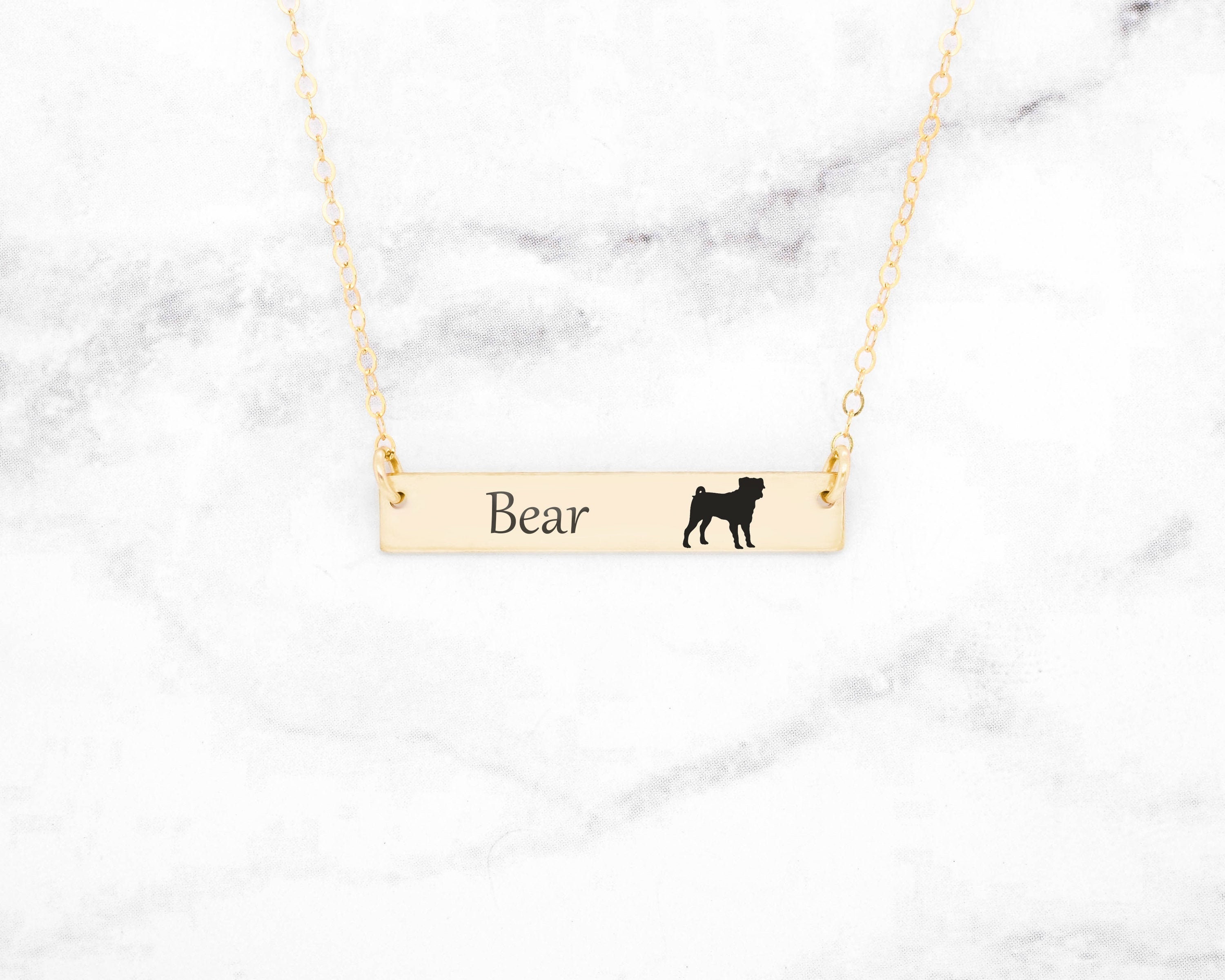 "A dainty Pug bar necklace. Details Metal: Solid Sterling Silver (.925 silver), Gold, or Rose G...