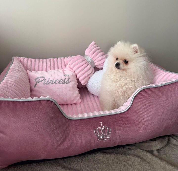 Handmade Dog Soft Bed, Luxurious and Soft Pink Bed for Small Dogs, ...