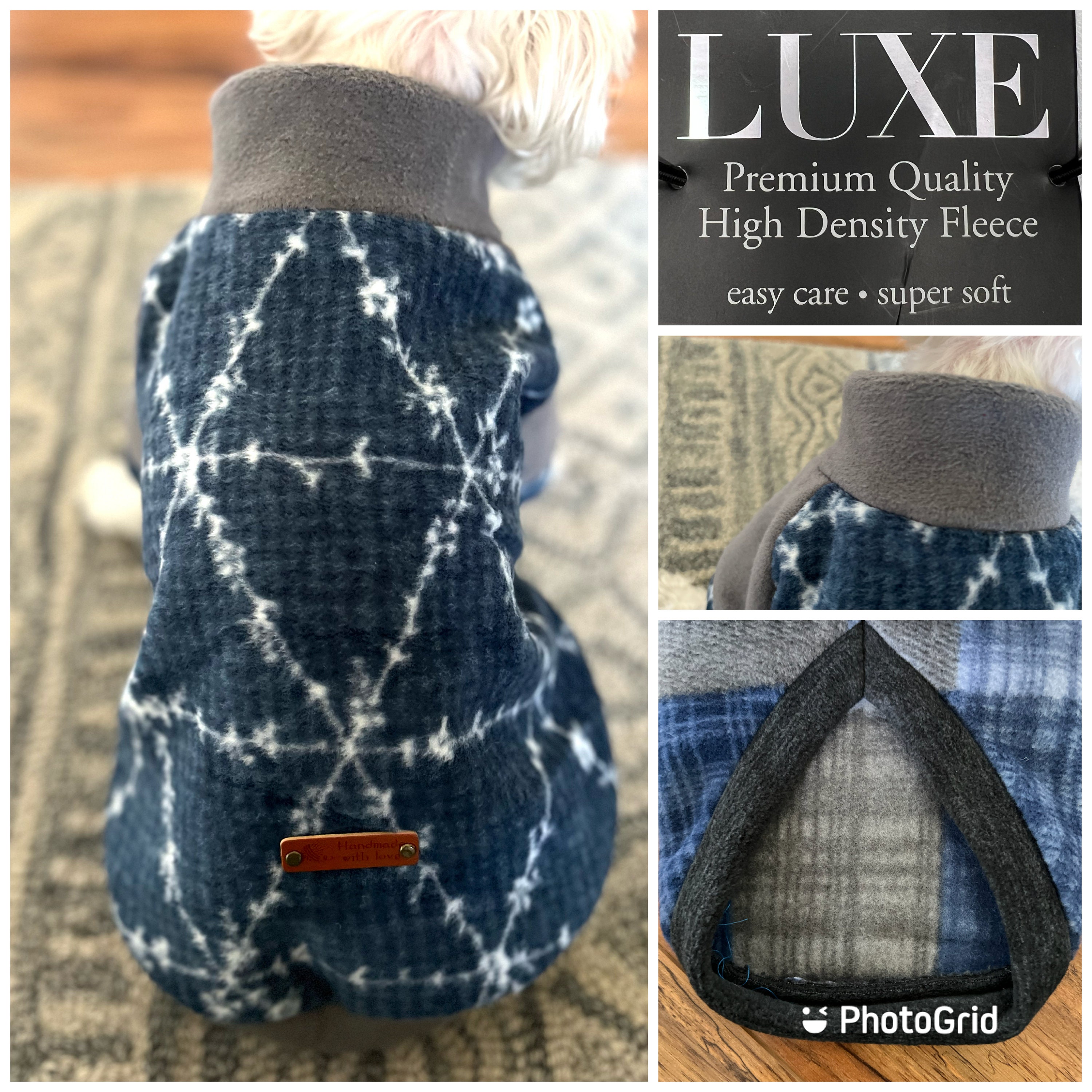 "Small Breed Dog LUXE Sweater. Small Breed Dog Premium Sweater, Blue Triangle dog Luxe sweater,...