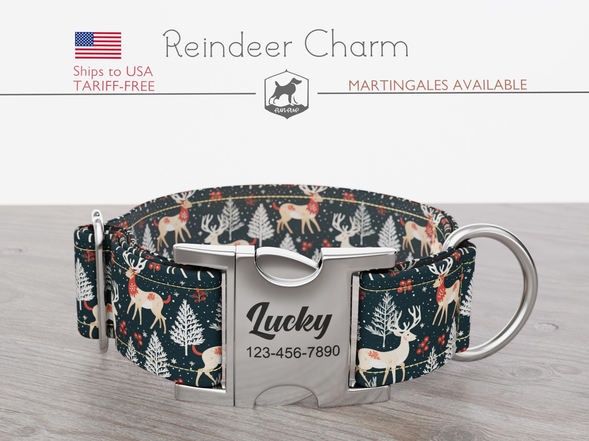 Winter Dog Collar, Reindeers, Regular/Martingale, Handmade, Wide 1,...