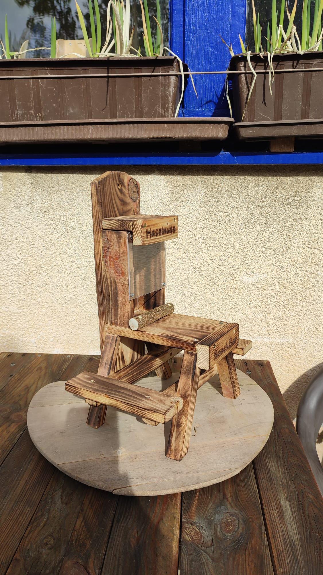 Squirrel feeding station flamed handmade from disposable pallets, s...