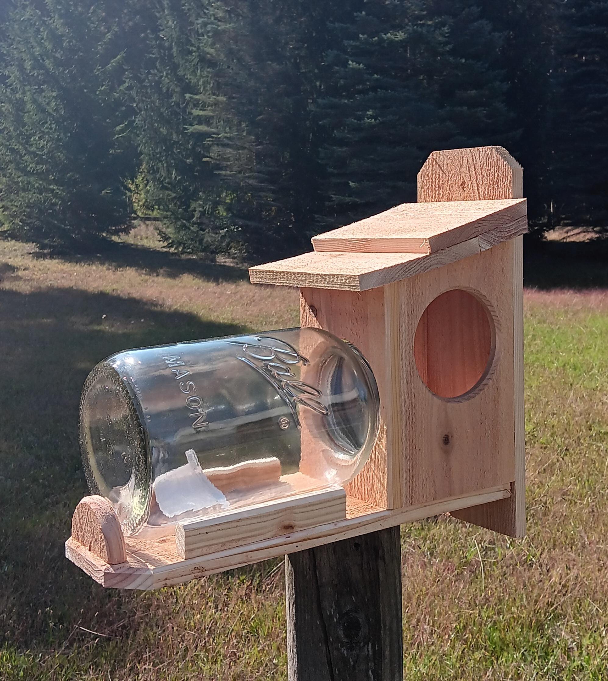 "Handmade custom Cedar Squirrel Feeder. Mason/Ball/Canning jars are the actual feeder. This fee...