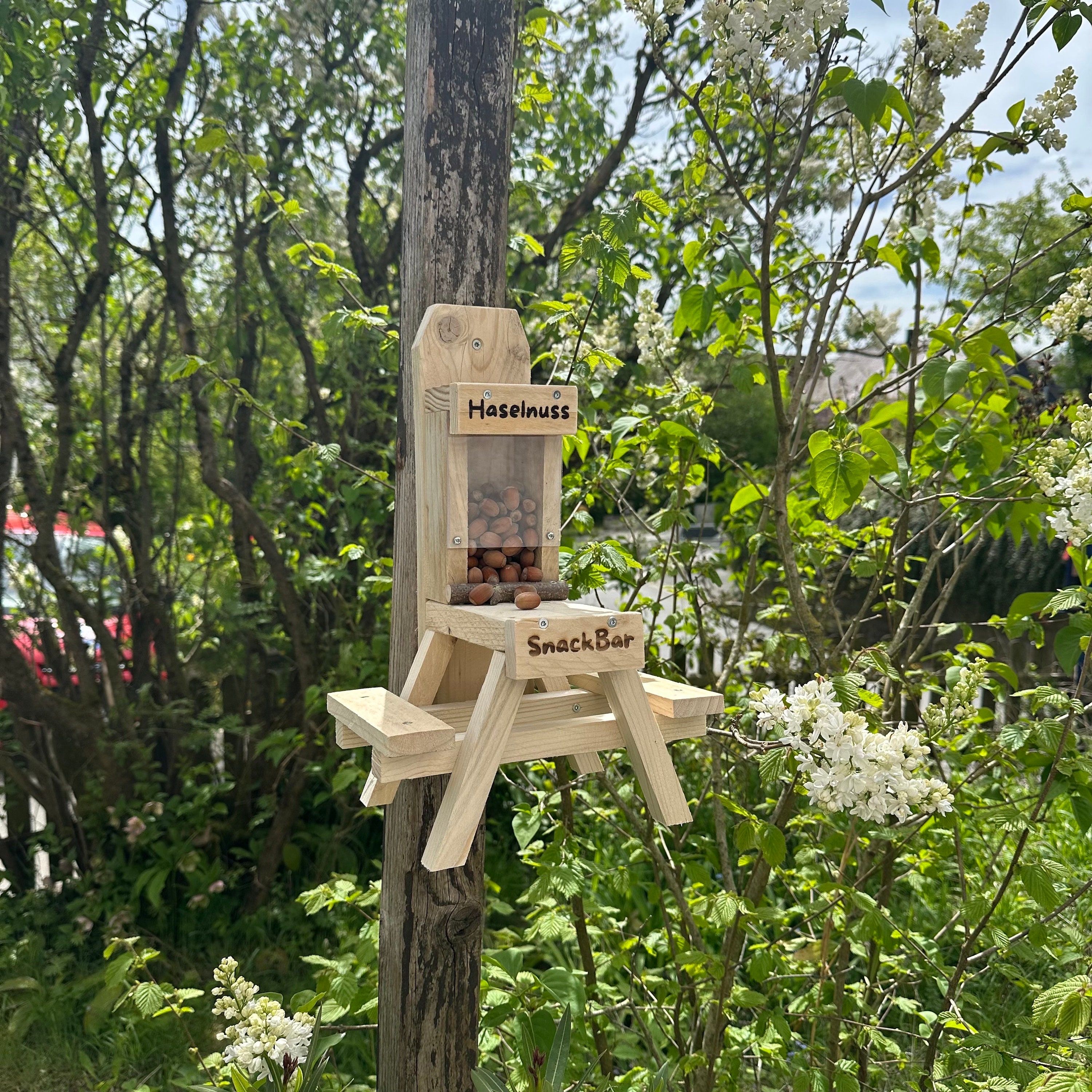 Discover our handcrafted squirrel snack bar, a sustainable and customizable feeding station for our ...