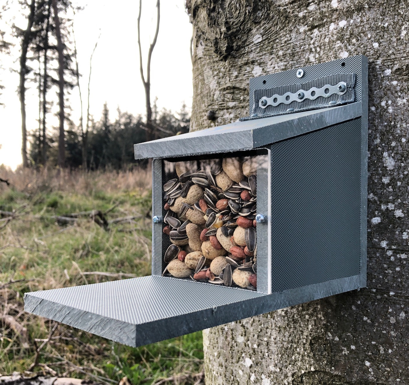 SQUIRREL FEEDER BOX STARTER KIT WITH 300g SQUIRREL FOOD. NEW. HAND MADE FROM 100% RECYCLED PLASTIC. ...