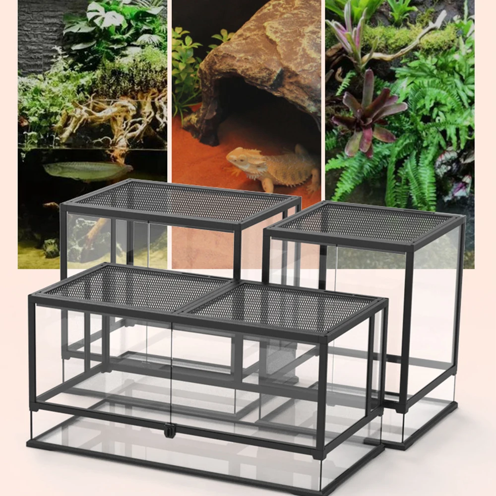 Premium Glass Reptile Terrarium - Chameleon & Lizard Habi...