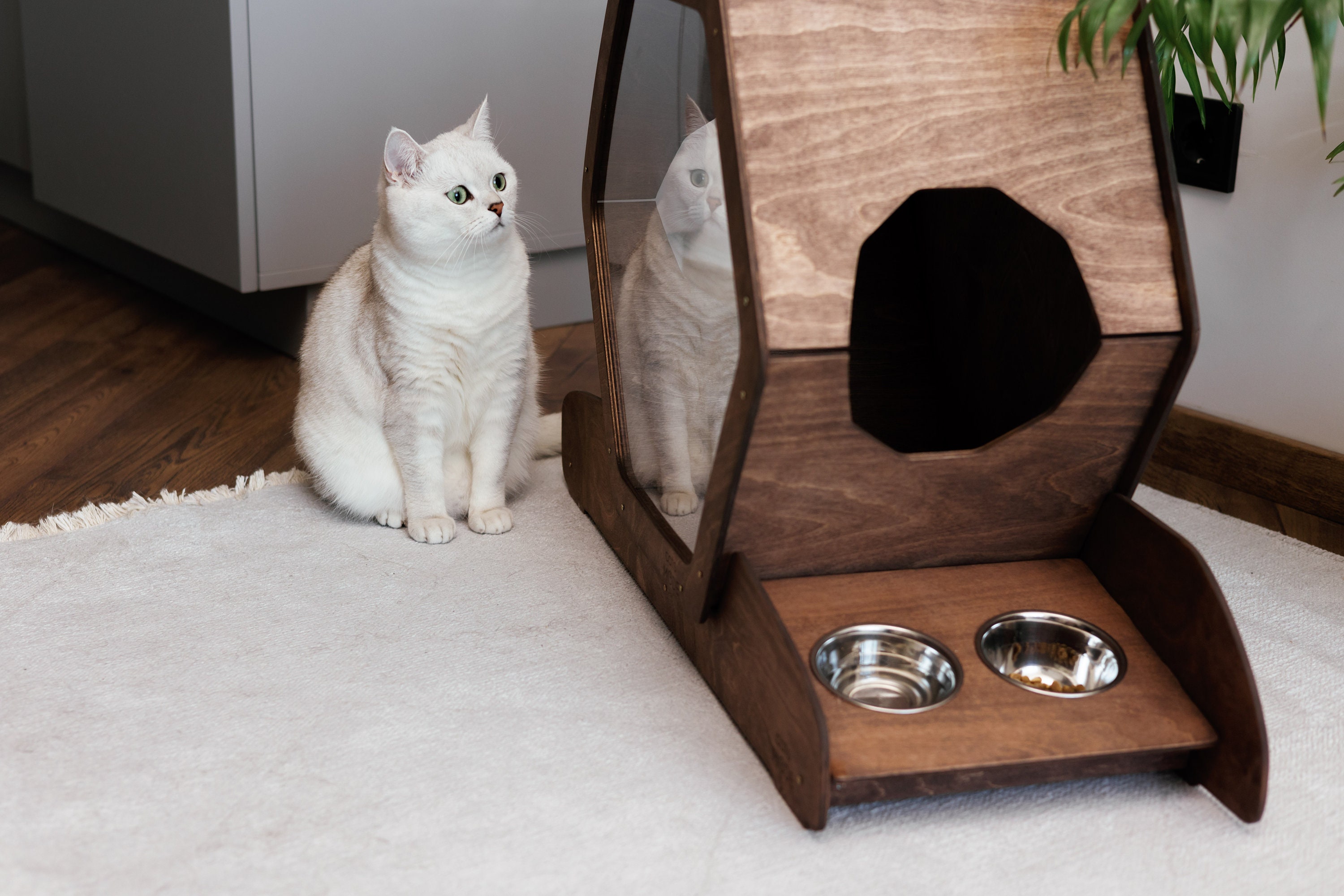 Give your cat a safe and stylish space! This handmade wooden cat house is perfect for indoor and out...
