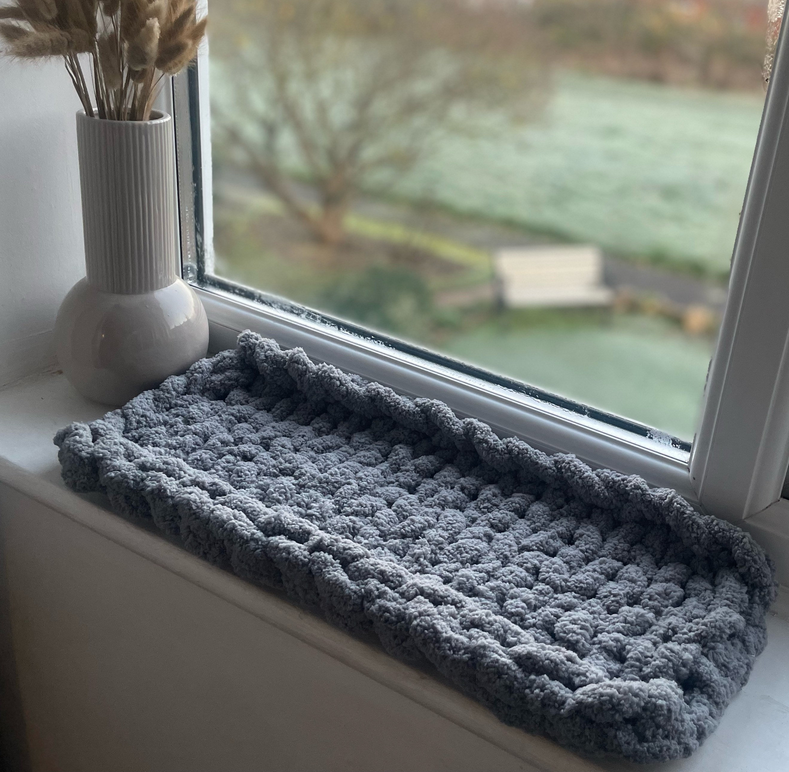 This handmade oval cat window mat is specially designed for the windowsill and is custom-crocheted i...