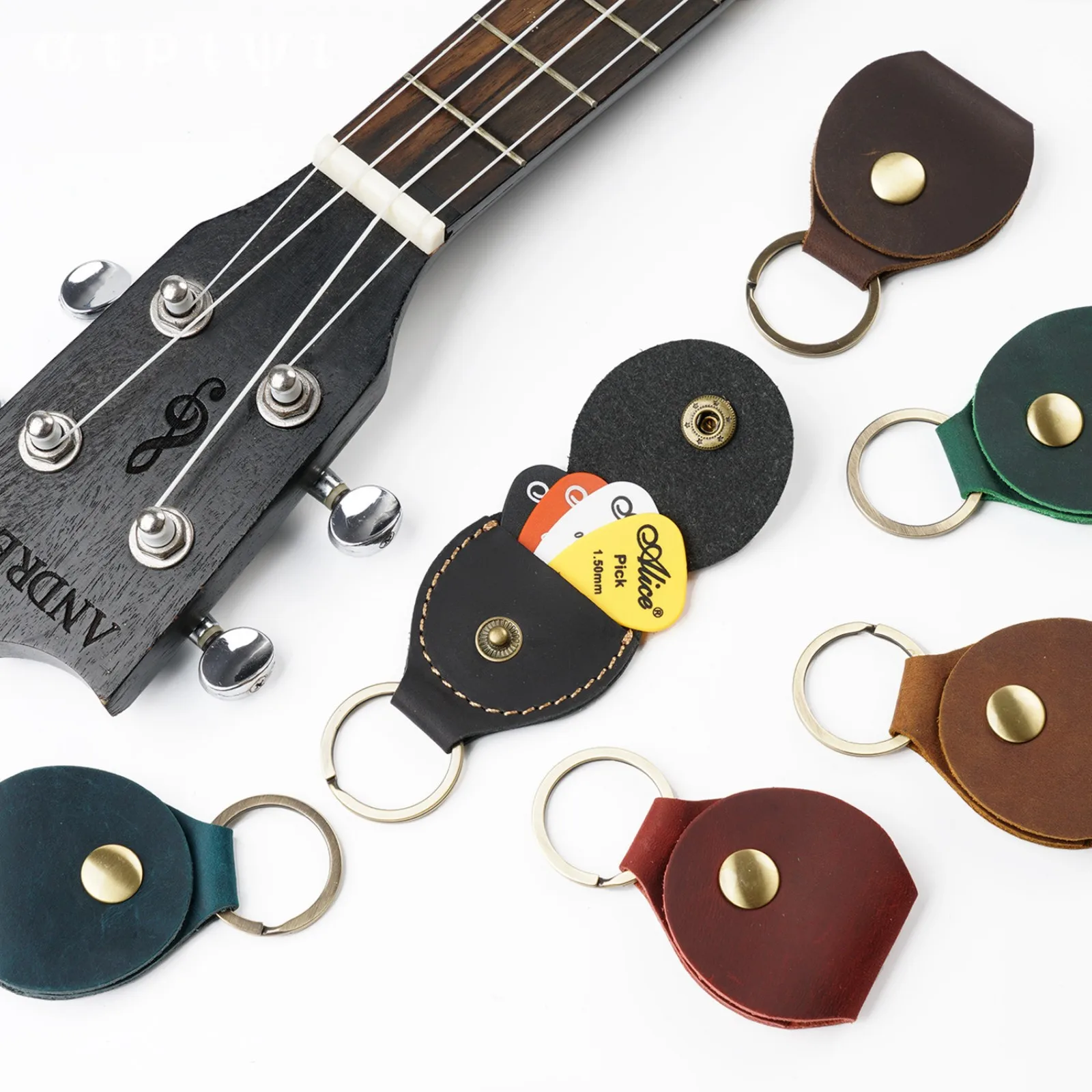 Genuine Leather Guitar Picks Holder Case with Key Ring, Vintage Gui...
