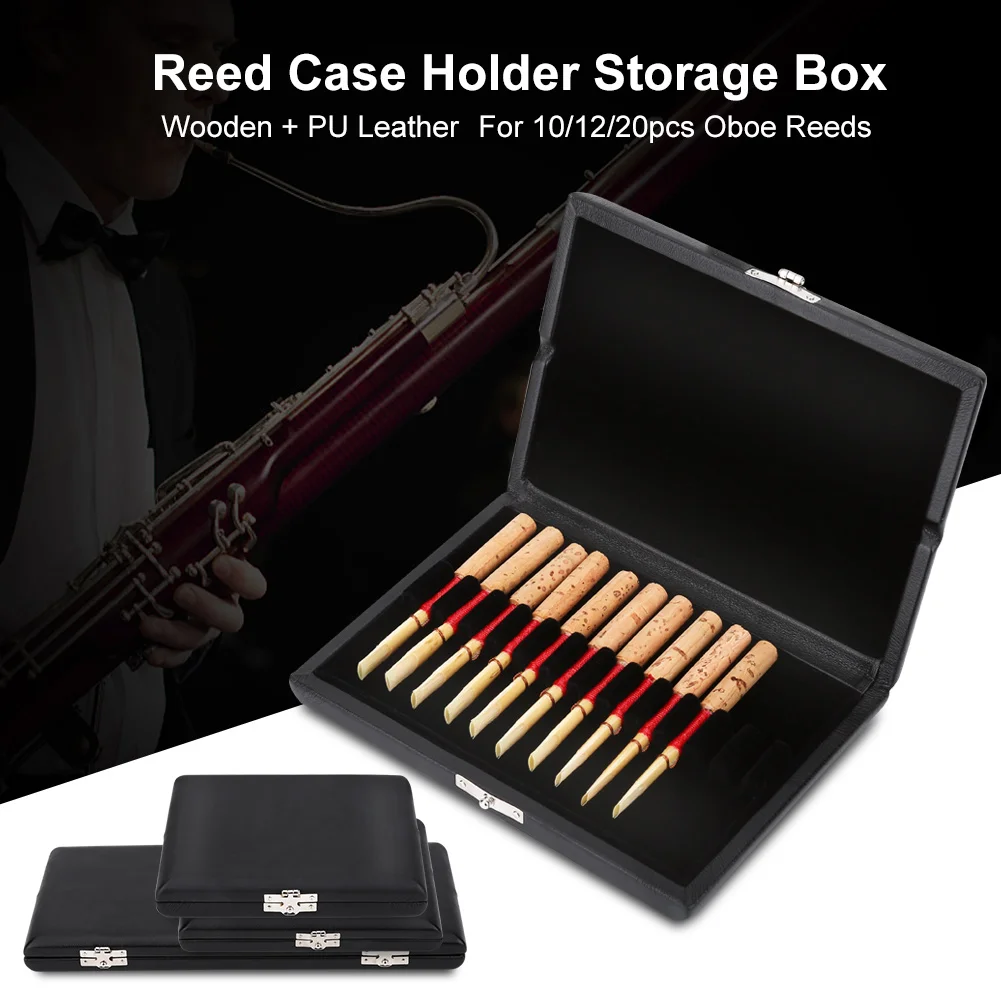Oboe Accessory Box Oboe Reeds Case Wooden PU Leather Cover Reed Case Holder Storage Box for 10/12/ O...