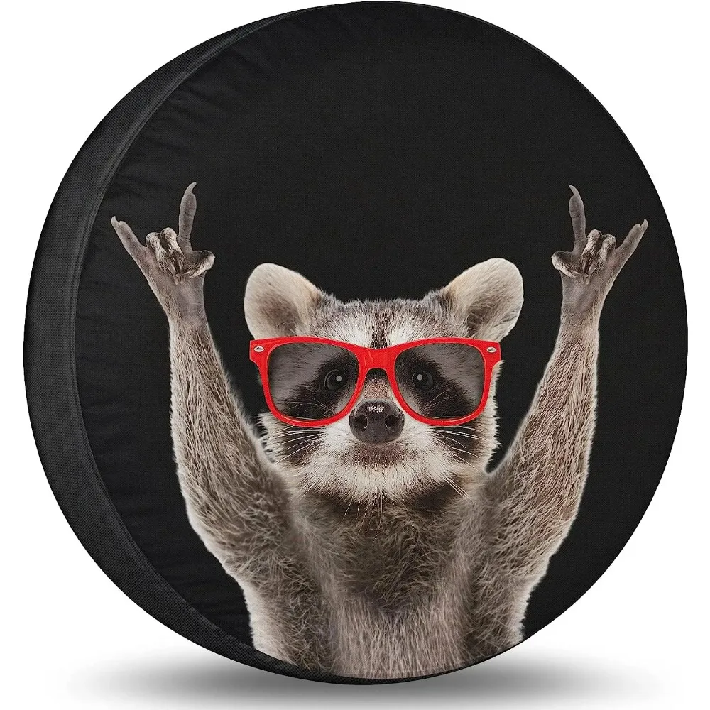 Spare Tire Cover Red Sunglasses Raccoon Tire Cover Waterproof Dust-...