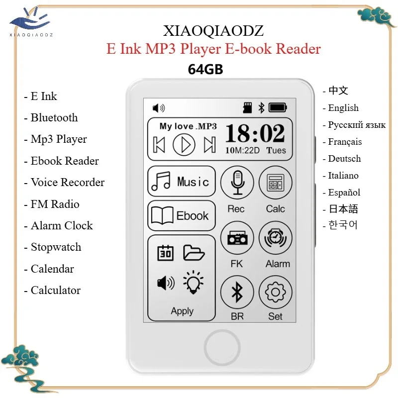 XIAOQIAODZ E Ink MP3 Player TF Card 64GB Usb Hifi Bluetooth Speaker Music Mini Ebook Electronic Book...