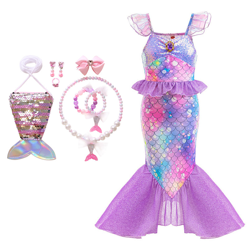 Kids Little Girls' Dress The Little Mermaid Solid Colored Mesh Purp...