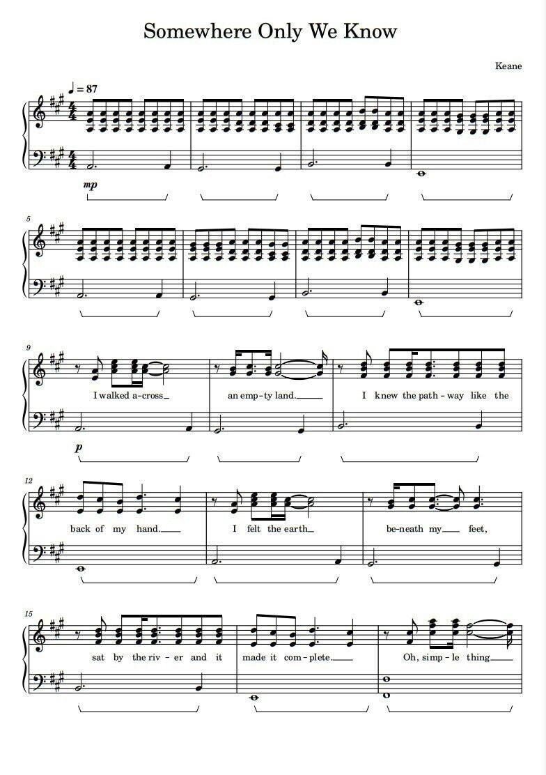 Somewhere Only We Know | KEANE - Piano Sheet Music Score with note ...