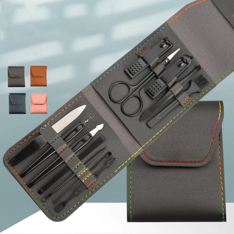 Custom Logo 12pcs/set Manicure Pedicure Tool Carton Steel Black Nai...