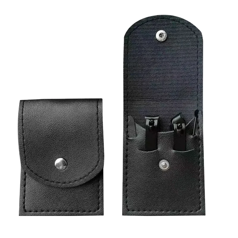 Custom Mini 4PCS Black Nail Clipper With PU Bag Stainless Steel Nai...