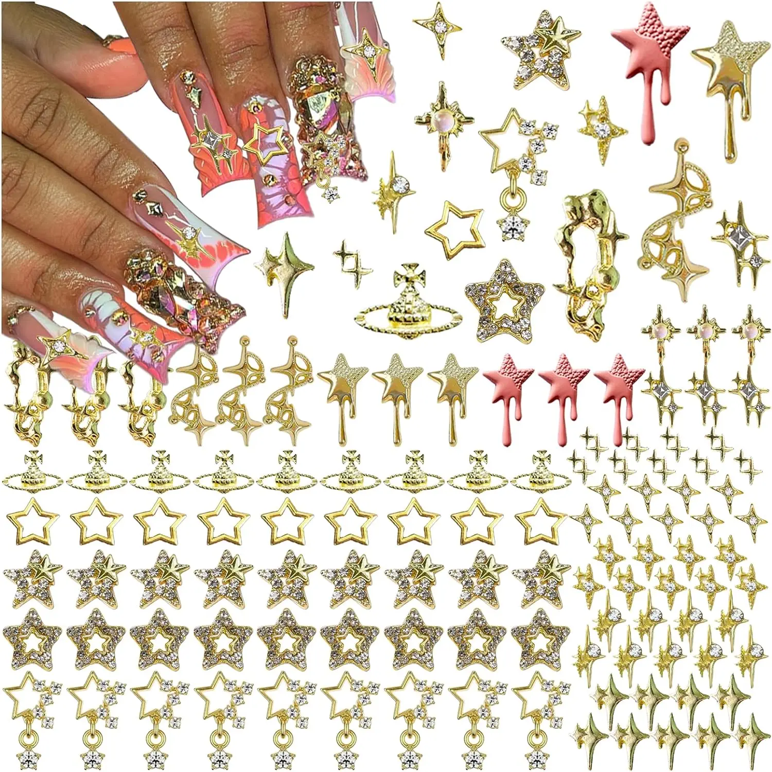 124PCS Star 3D Nail Charms for Acrylic Nails, Gold Alloy Nail Gems Starburst Nail Accessories, Nail ...