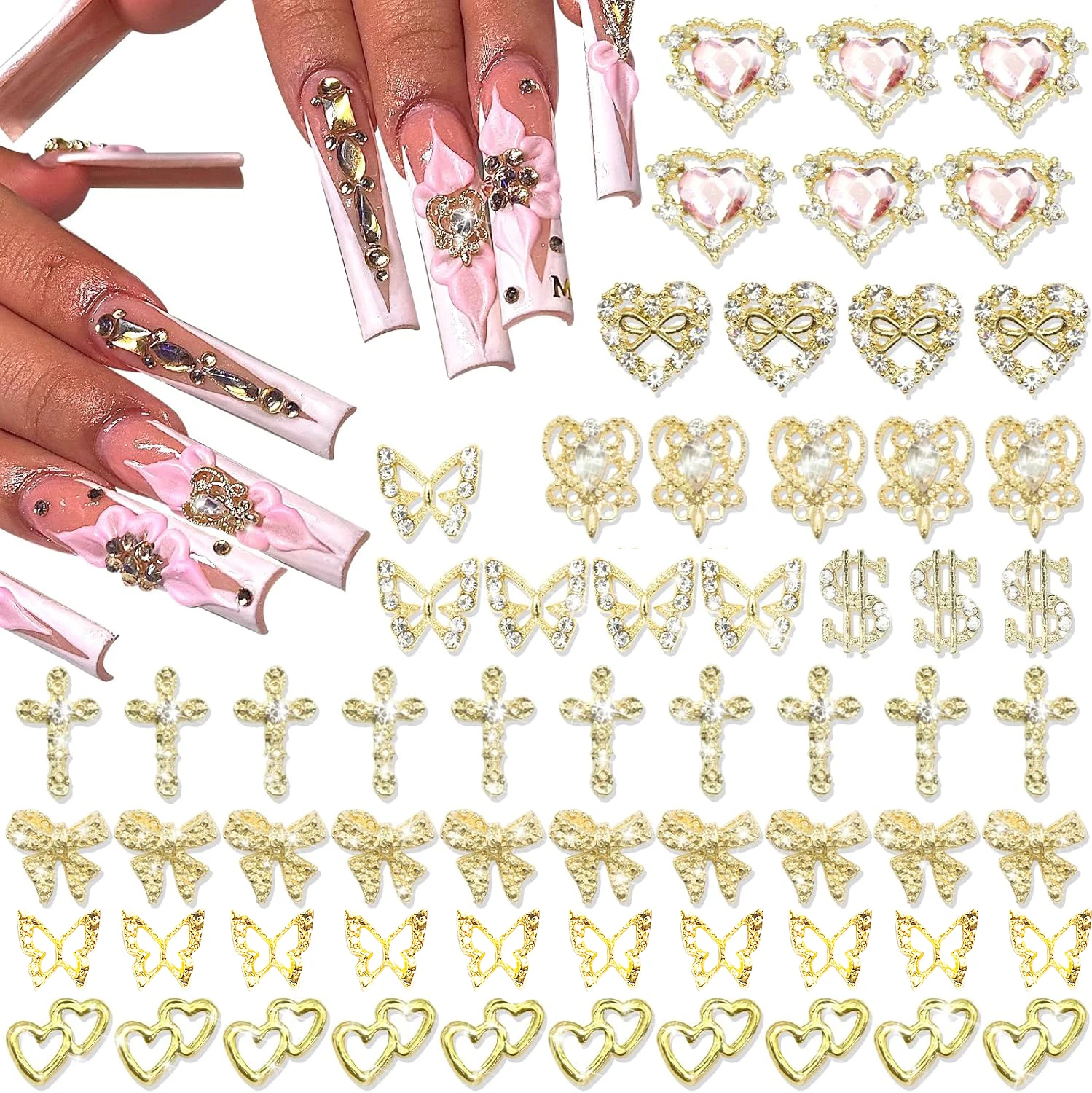 80PCS Gold Nail Charms 12 Shapes Gold Heart Nail Charm 3D Butterfly...