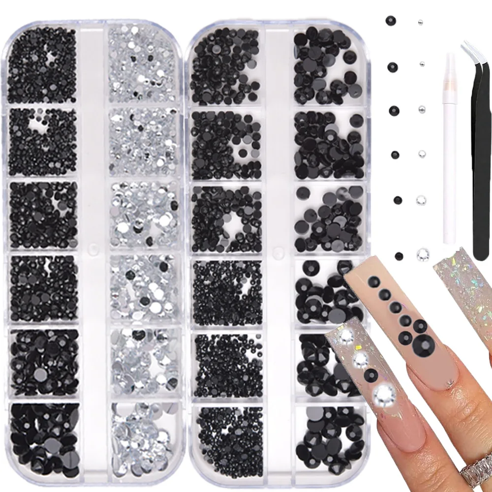 12Gird 3D Glass AB Crystal Nail Art Rhinestones Kit Flatback Round ...