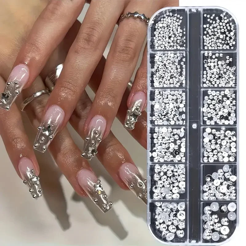 NEW SALE 12 Grid Mixed Flat Bottomed Pearl Half Round Rhinestones 3D Nail Decoration Nail Jewelry Na...