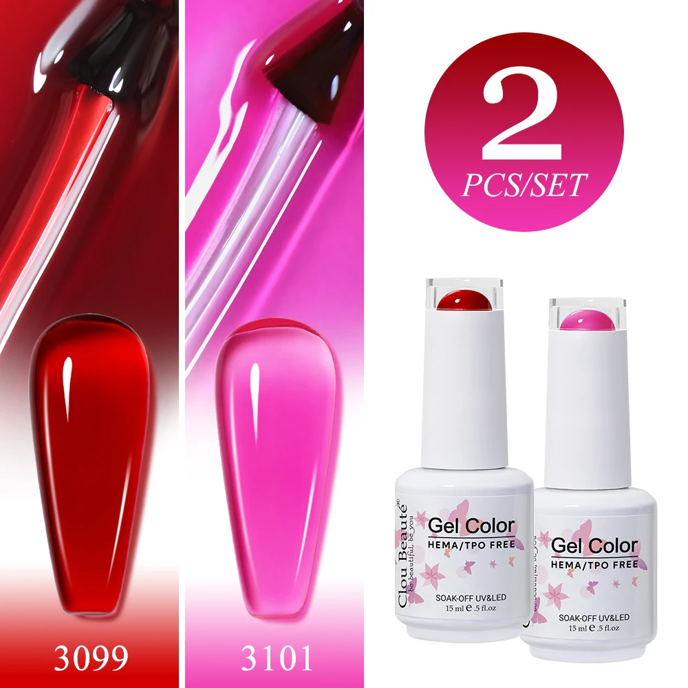 Clou Beaute 2pcs Translucent Pink Ruby Red Color Nail Gel Semi-Permanent Varnish Jelly Gel Nail Varn...