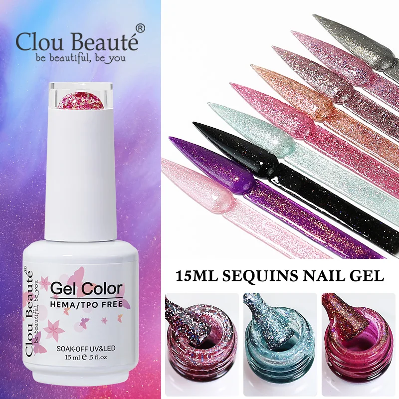Clou Beaute Glitter Gel Nail Varnishes Winter Color Sparkling Sequins Soak Off UV LED Varnish Nail A...