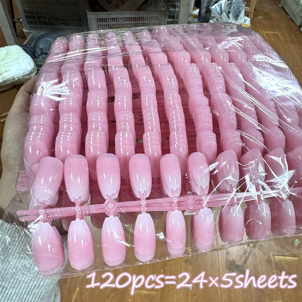 120PCS Nude Pink Gradient False Nails Glossy Medium Ballet Press On...