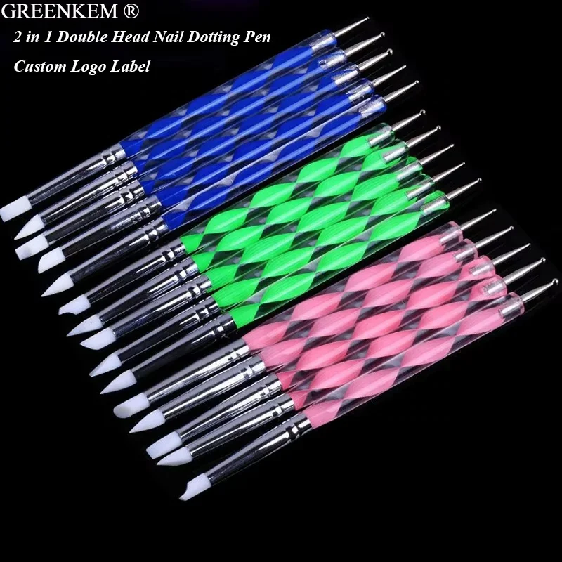 5Pcs/Lot Nail Art Dotting Pen Dual Head UV Gel Carving Pen Nail Silicone Brush Set Pottery Clay Scul...