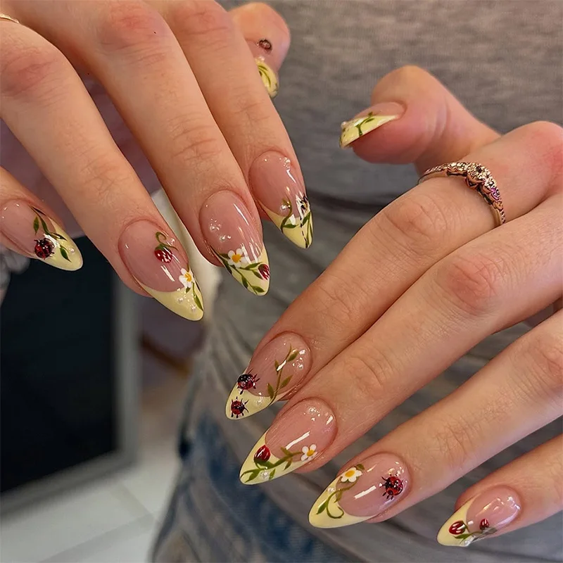 10Pcs Long Almond Handmade Press on Nails Butterfly Fake Nails Wearable Stick-on Nails False Nail &#...
