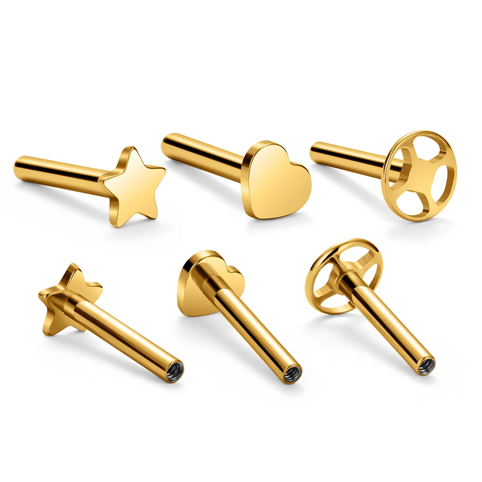 G23 Titanium Alloy Internal Thread Gold-plated Lip Nail Ear Nail Bu...