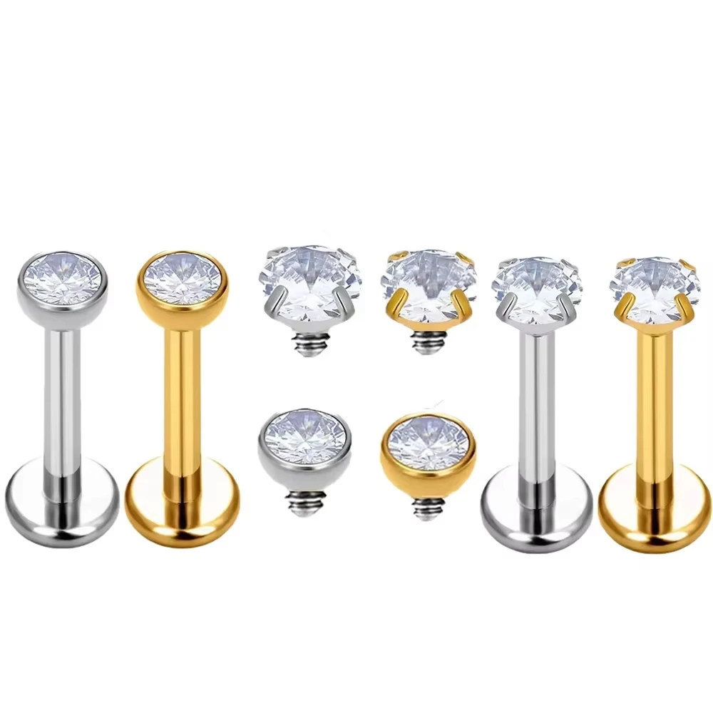 G23 Titanium F136 Puncture Jewelry Accessories Four Claw Zircon Lip...