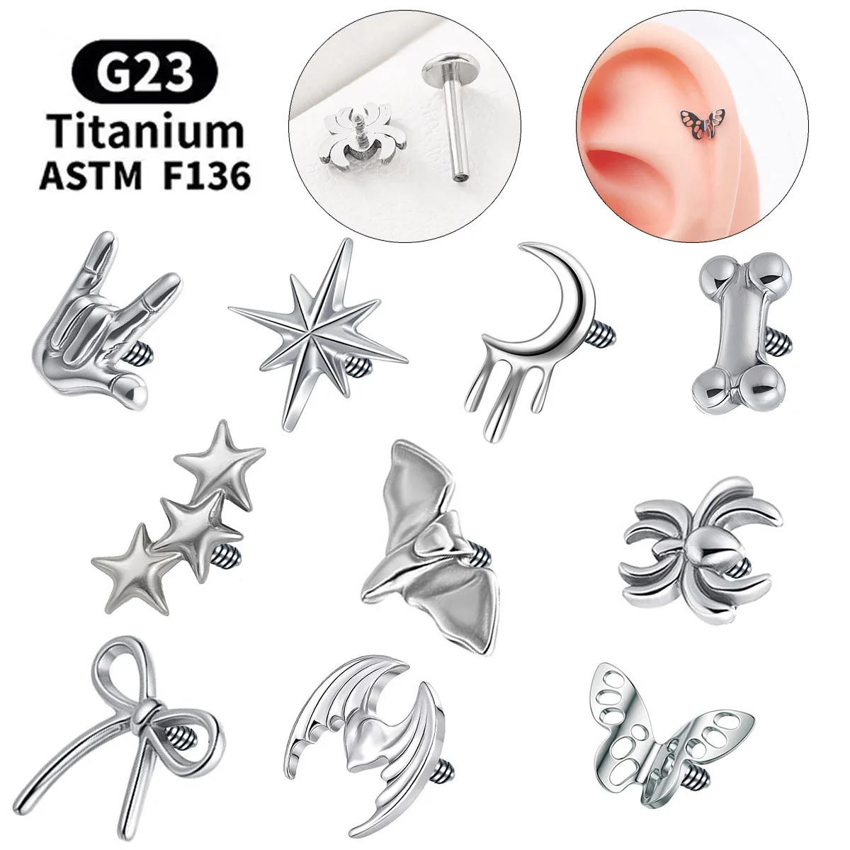 G23 ASTM F136 Titanium Classic Top Zircon Ear Wheel Ear Cartilage E...