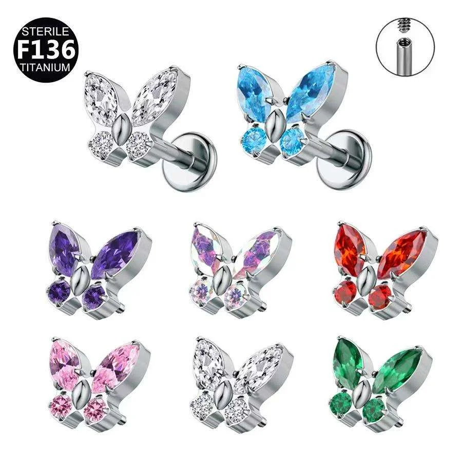 G23 Titanium Cute Exquisite Butterfly Shaped Zircon Body Jewelry Ea...