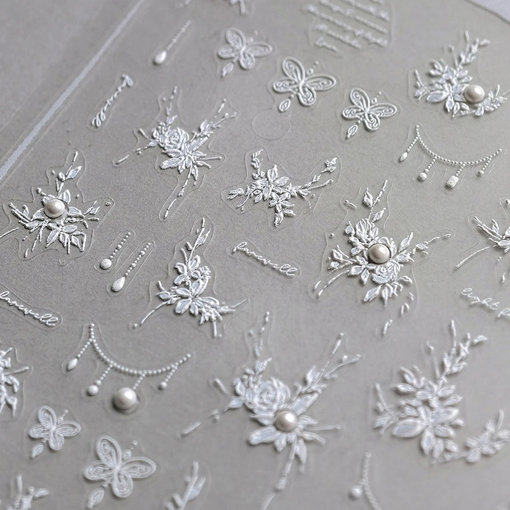 White Flower Butterfly Pearl Petal Beautiful Rose Garden Charming Plant Floral 5D Self Adhesive Nail...