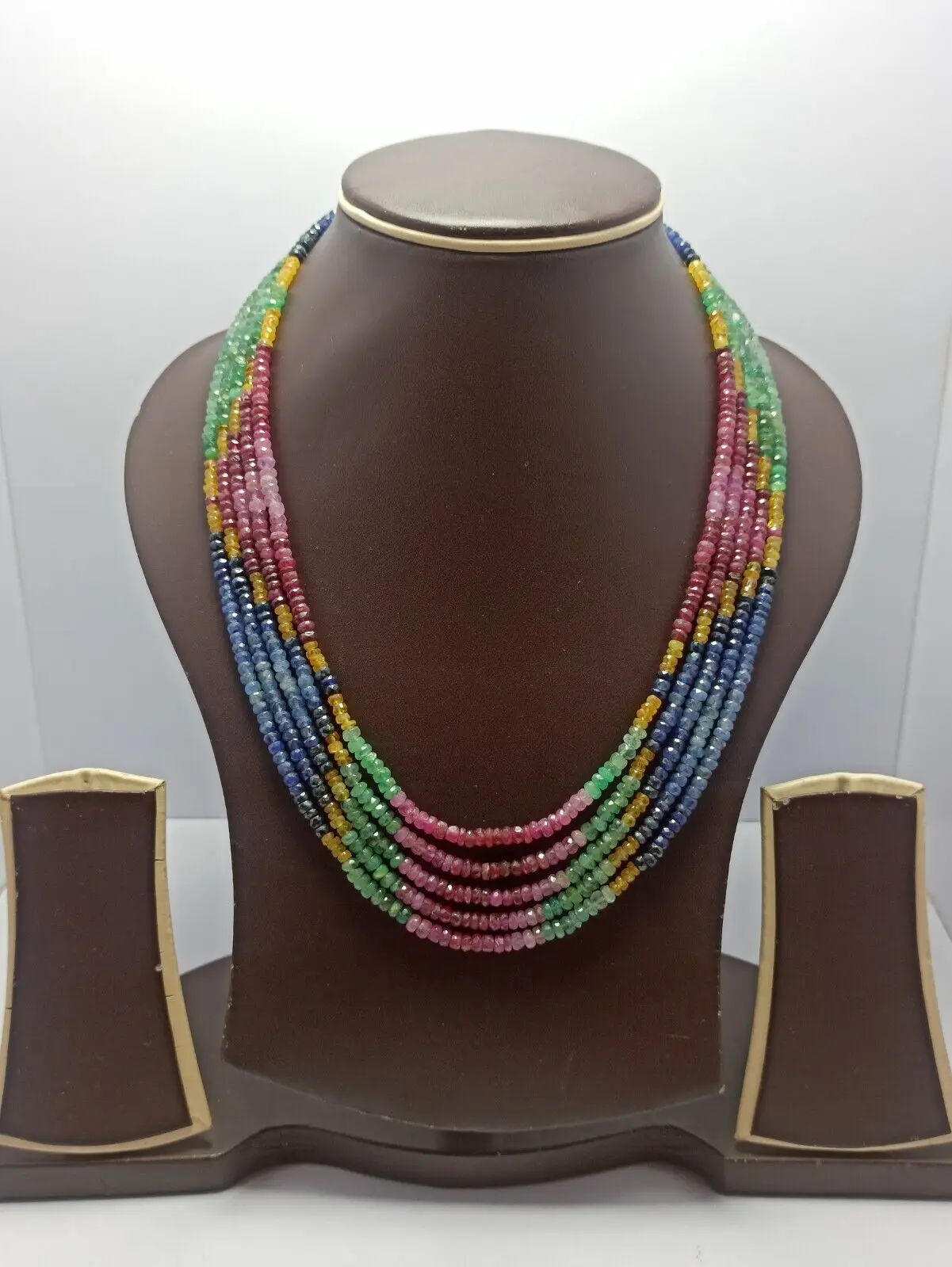 411 Carat Natural Multi Sapphire Gemstone Faceted Beads 18'' 5 Stri...