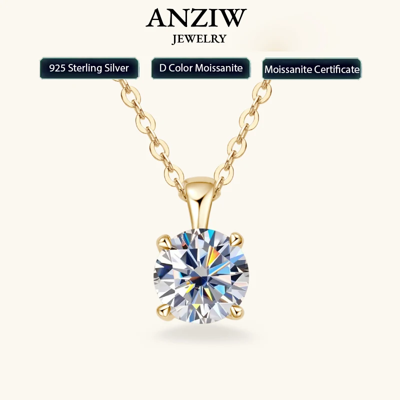 1.0 carat 2ct 3ct D Moissanite Solitaire Drop Necklaces 18k Gold Plated Pendant Original Real 925 Si...
