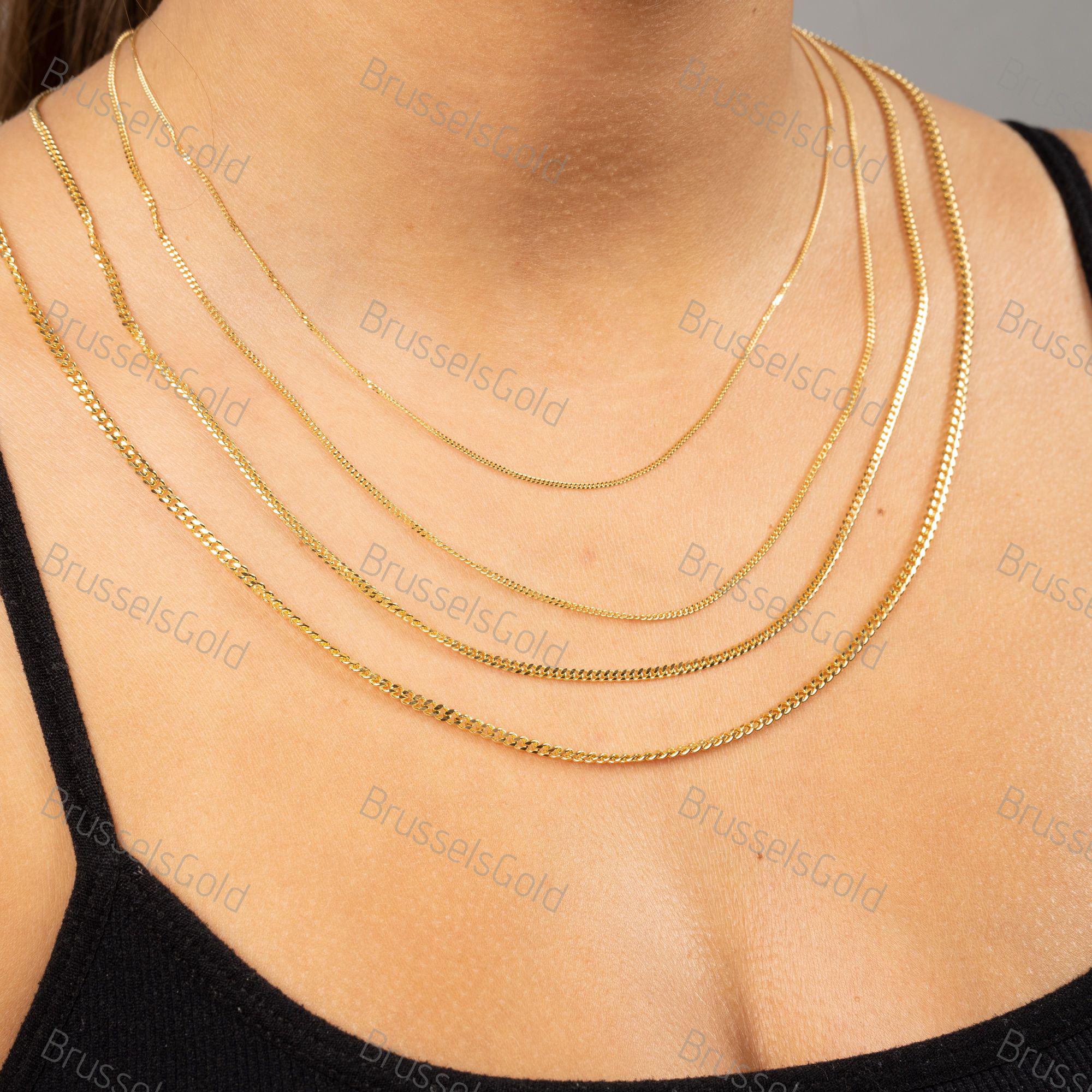 "All Our Jewelry Is MADE OF 100% REAL GOLD 14K Solid Gold Gourmette Chain Necklace. 1MM 1.4MM 2...