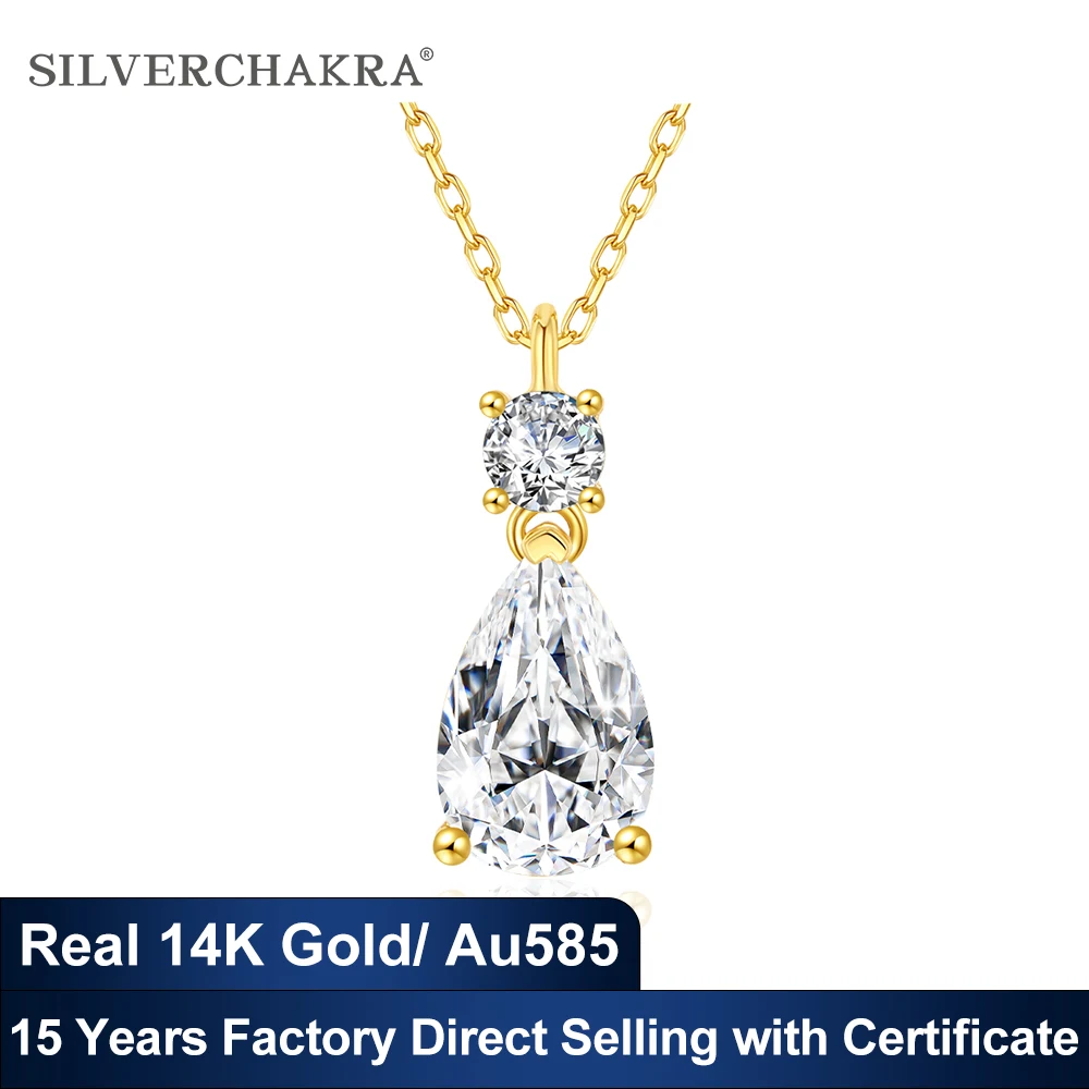 Trendy Lovers' Real 14k Gold Necklace Pear Cut Moissanite Diamond 3 Carat 7*11mm Wedding K gold Jewe...